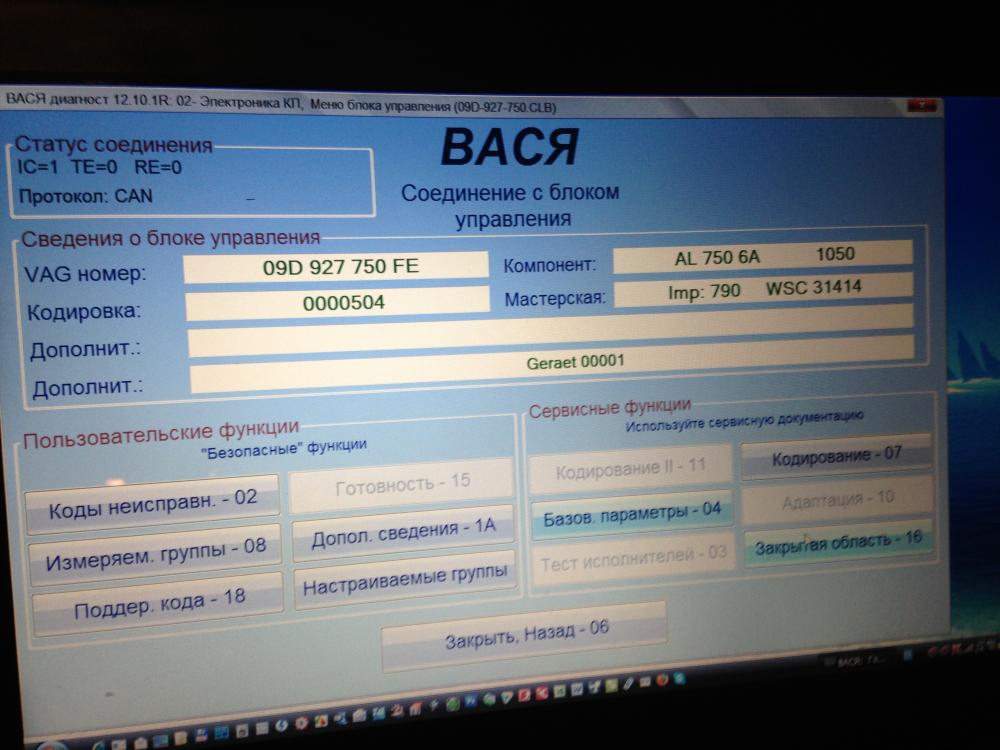 Всем доброго времени. Не получается провести адаптацию акпп!!! Ничего не понимаю, ни ВАСЕЙ ДИАГНОСТОМ, ни ВАГом.... Что не так , пните посильней, в чем дело... Захожу , 2 адрес ( электроника кп) , http://www.audi-club.ru/forum/attachment.php?attachmentid=318118&stc=1&d=1362869370 А кнопка "адаптация" не активна, вот сюрпрайс, как это может быть, на двигателе все работает , а на акпп нет. Ладно захожу в измеряемые групы--базовые параметры, в 001,002, 003 блок, сначала висит на месте груп одно единое моргающее окно, с немецким матюком типа-GRUNSTAILUNG-( простите если искаверкал) , ладно тыкаю вкл. , постоял ,ничего не происходит, начал движение , вывалилась вот это... http://www.audi-club.ru/forum/attachment.php?attachmentid=318119&stc=1&d=1362869502 Как понимать?