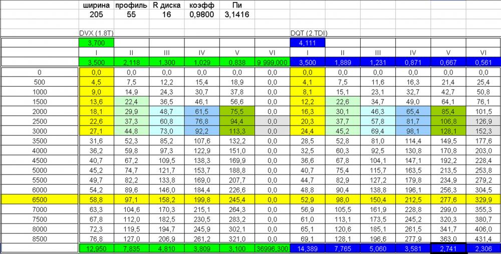 я тебе с дому на почту (скин ьмне в лс мэйл) скину ексельынй файлик куда внесешь свои ГП и передаточные и получишь скорость на каждой передаче при оборотах. и сам все посмотришь.