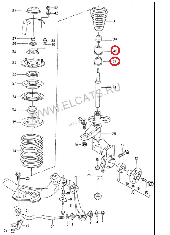 У меня две пары тонких, сделал замер, толщина 1.1-1.2мм. Ещё думал отчего же умирают опорники. Конструкция детальки, мягко говоря, так себе. Малейшее попадание песка и здравствуй скрежет. Мне кажется, что если предварительно, как следует, не зачистить место посадки и всё что его окружает, то подшипник будет умирать постоянно. А вот почему он разваливается на куски, это другой вопрос. З.ы. у меня оба Fag'a в мясо просто. Деталь под номером 26 (431412047B) это гайка крепления амортизатора? В противном случае ни этой детали, ни 41 (431 412 389 B) у меня ни на одной из 4х стоек не было. Спойлер http://www.audi-club.ru/forum/attachment.php?attachmentid=460945&stc=1&d=1430741308