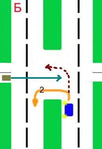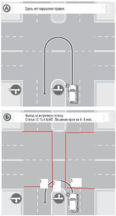 Если ты едешь на перекресток, где есть разделительная полоса, то на перекрестке ты должен разоврачиваться, предварительно выехав на условный центр перекрестка. при развороте ты эти 2 метра ее ширины проезжаешь по встречке! «8.6. Поворот должен осуществляться таким образом, чтобы при выезде с пересечения проезжих частей транспортное средство не оказалось на стороне встречного движения." Выполняя разворот на этом перекрестке, вам придется использовать для движения участок проезжей части, имеющий двустороннее движение. Поэтому, въезжая на перекресток, вы можете продолжить движение только по правой стороне этого участка проезжей части (п. 1.4), т.е. по траектории А. 9 вопрос 1 билета http://acars.ru/pdd/1/ Зы.: про 2 перекрестка не знал уж как обяснить, ляпнул, не думал, что так формально подойдешь, хотел передать смысл. что "как бы" два.