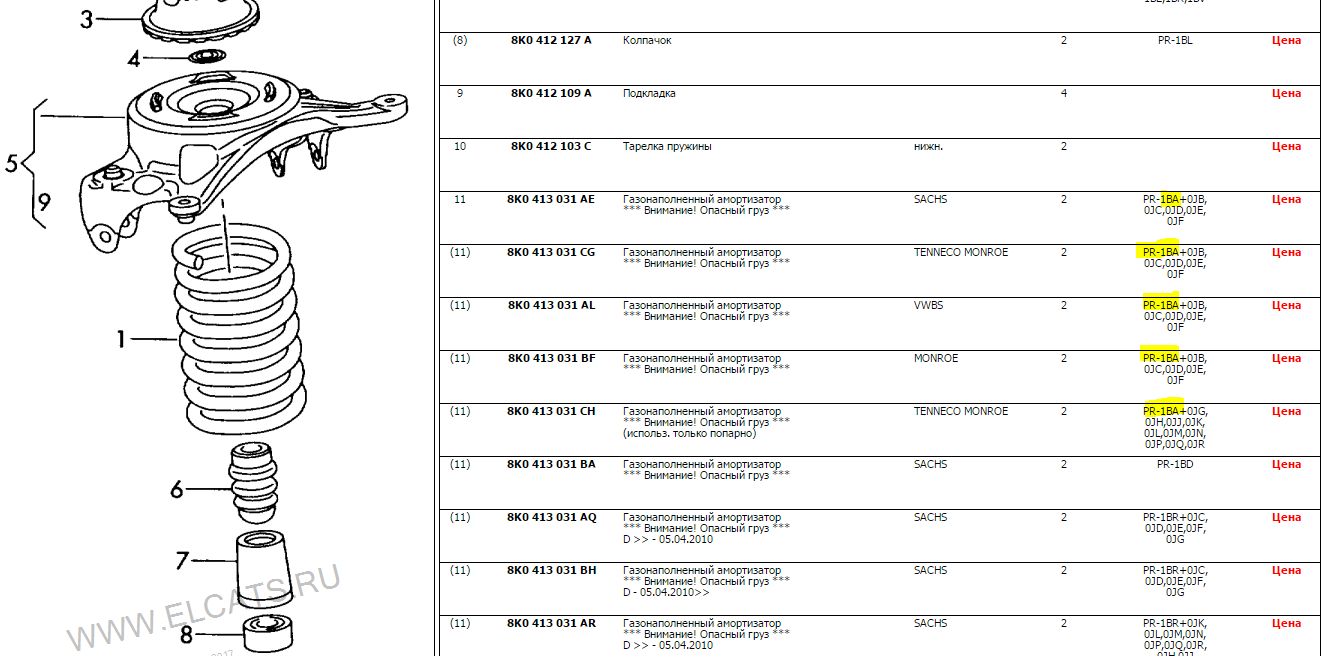 По моему такой)) На задний счет нашел...На передний на нашел))) Рыться долго Гляньте на Экзисте.. Стандарт = PR 1 BA Наш с пакетом это PR-1BR