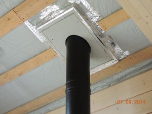 Фото 2,3,4 - изготовление противопожарного проходного элемента кровли (пока в половину толщины)