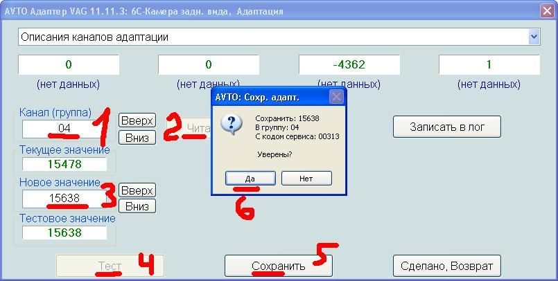 — Выбираем канал 01 => читать => вводим новое значение 1 => Тест => Сохранить => Подтвердить. И уже после этого жмем кнопку "Сделано, Возврат":