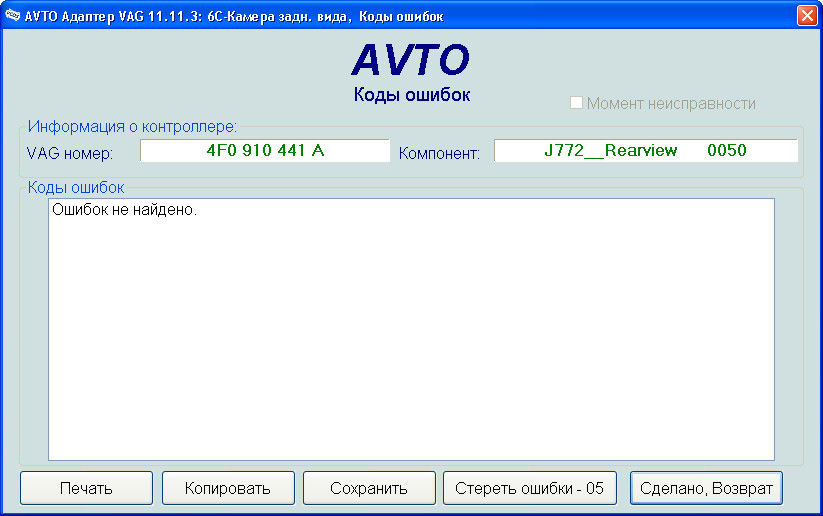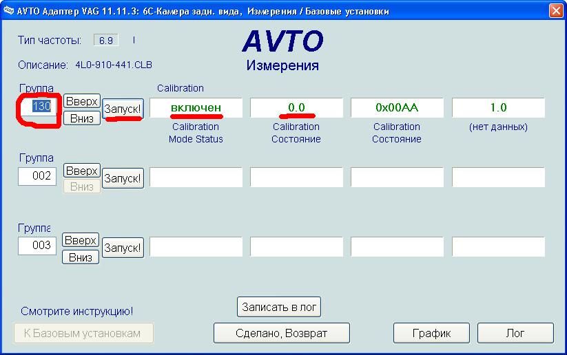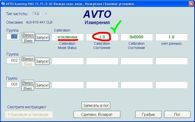 После этого начинаем ввод новых значений в блок камеры. В официальном сервисе эта процедура выполняется на специальном комплексе VAS 5051B, которого у нас естественно нет, но есть вышеупомянутый VAG-COM, у которого последовательность действий при калибровке немного отличается. Пошаговая инструкция подробно расписана тут.