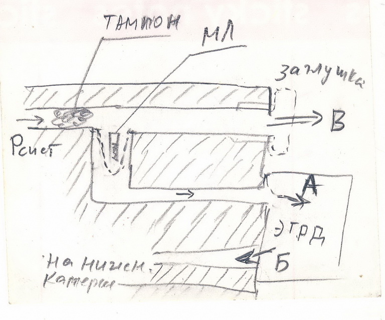 4. Из баллончика по утолщенной (точно по размеру канала ЭГРД) с помощью изоленты на трубке подавал КАРБОМ в правый (по ходу) канал (А).