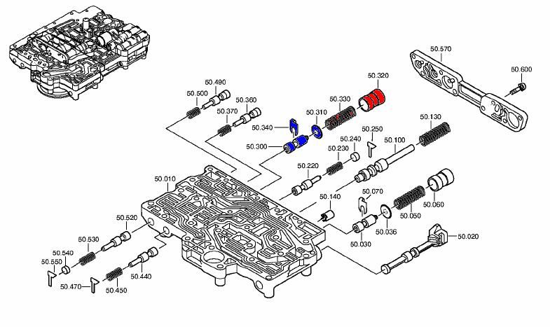 Че вы все мучаете мозг - неверняка собрали переднюю часть гидроблока - а именно плунжер включения муфты "А". По каталогу ZF 1058 327 017 (номер на схеме - 50.320). В старой модификации идет двойное регулирование и он ставится в сторону крышки. В новой модификации наоборот - со стороны крышки пружина. Т.е. на схеме для новой модификации неверно указано направление работы плунжера. В первых постах от Mаestro_rzn выложено, но повторю а на схеме наоборот: http://www.audi-club.ru/forum/picture.php?albumid=2041&pictureid=9960 красным отметил сам клапан а синим то - чего в новой модификации нет Видите - стоит наоборот!!! Как только вы ставете рычаг в положение D на поршень сцемления "А" идет все давление - и фрикционы собираются за мкс. Тоже самое при переключении с 5й на 4ю - Можете порвать такими опытами коробку!!!