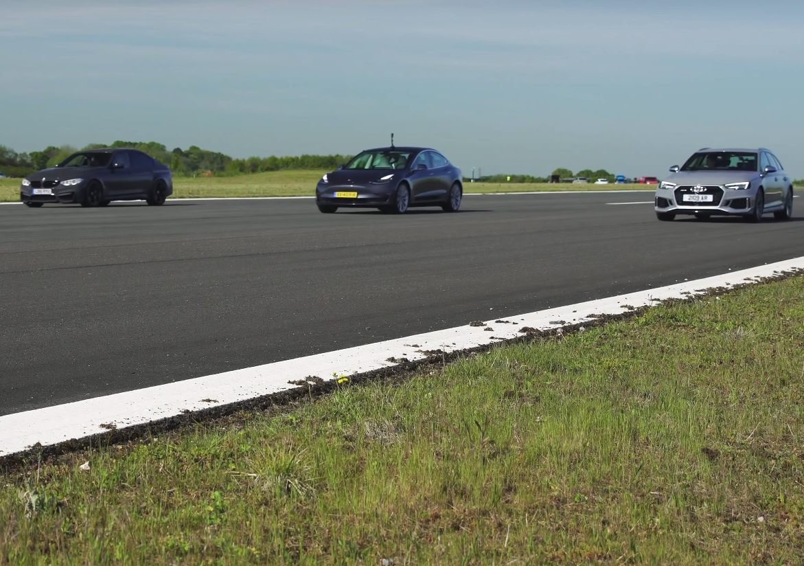 Компактные автомобили в наше время бывают разных форм и размеров — это и седаны и хэтчбеки, и даже компактные универсалы, а с недавних пор и компактные электромобили. Производительные версии данных автомобилей развивают мощность более 400 лошадиных сил, и ребята из CarWow решили проверить, какая из трех популярных моделей данного сегмента — универсал Audi RS4 Avant, седан BMW M3 или электрокар Tesla Model 3 Performance окажется быстрее в гонке на четверть мили. Audi RS4 Avant весит 1790 килограмм, оснащена 2,9-литровым V6 с двойным турбонаддувом, развивающим 444 л.с. и 600 Нм, работающим с системой полного привода. BMW M3, весящая 1647 килограмм, получила под капот 3-литровую рядную шестерку на 425 л.с. и 550 Нм, передающую мощь на задние колеса. Наконец, два электромотора Tesla Model 3 (вес 1847 килограмм) развивают 473 л.с. и 639 Нм крутящего момента. Сможет ли мгновенное и бесшумное ускорение электромобиля Tesla превзойти турбированное совершенство немецких компактных спорткаров? livecars.ru