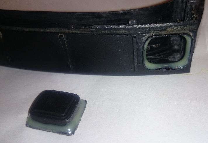 10. Отрезанную резинку от пипетки, надел на залитый клеем корпус кнопки и залил сверху клеем, естественно по тому же контуру как клеил кнопку. http://www.audi-club.ru/forum/attachment.php?attachmentid=500583&stc=1&d=1450725312 11. Для лучшей защиты от попадания влаги я дополнительно проклеил резинку в корпусе ручки по всему периметру и дал клею высохнуть. 12. Вставляем конструкцию кнопки в корпус ручки. Естественно делаем аккуратно, чтобы не повредить защитную резинку (от пипетки), возможно потребуется шлицевая отвёртка. http://www.audi-club.ru/forum/attachment.php?attachmentid=500584&stc=1&d=1450725709 13. Берём старую пластмасску, в которой ранее находилась старая кнопка и делаем из неё вот это: http://www.audi-club.ru/forum/attachment.php?attachmentid=500585&stc=1&d=1450726062 14. Затем вставляем её в корпус ручки между резинкой и задней пластмассовой стенкой, на которой расположена кнопка. http://www.audi-club.ru/forum/attachment.php?attachmentid=500586&stc=1&d=1450726425 http://www.audi-club.ru/forum/attachment.php?attachmentid=500587&stc=1&d=1450726458 Затем, проверяем работу кнопки с помощью мультиметра. http://www.audi-club.ru/forum/attachment.php?attachmentid=500594&stc=1&d=1450731072 http://www.audi-club.ru/forum/attachment.php?attachmentid=500595&stc=1&d=1450731114 Естественно, данную процедуру надо провести и в момент монтажа кнопки, а также когда будут припаяны провода. После того как всё на месте и проверена работа кнопки, заливаем данную конструкцию клеем, заливаем постепенно, слоями, давая клею немного высохнуть, таким образом получается очень герметичная конструкция, http://www.audi-club.ru/forum/attachment.php?attachmentid=500589&d=1450726942 я нажал на кнопку, а там пузырь из клея надулся.... Всё это дело должно высохнуть, затем следующий этап.