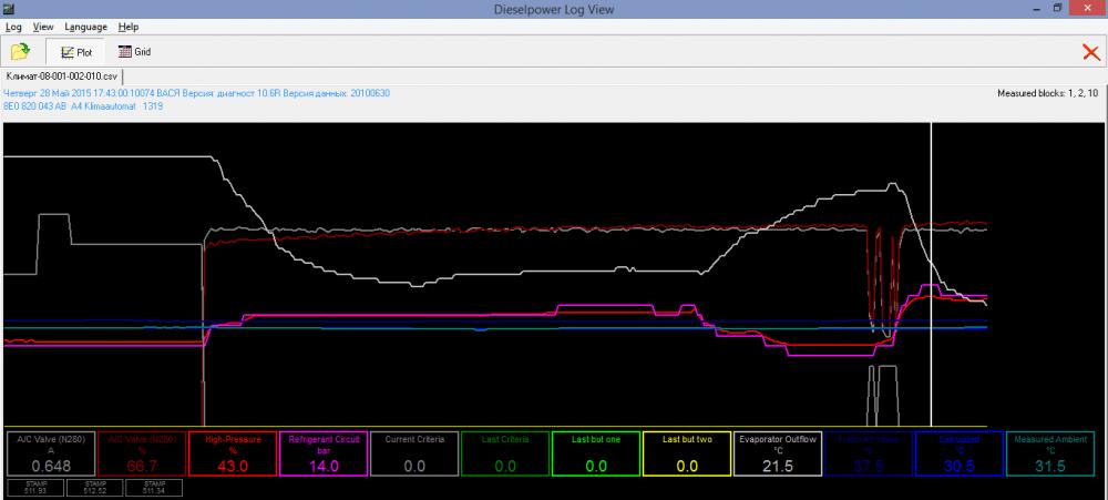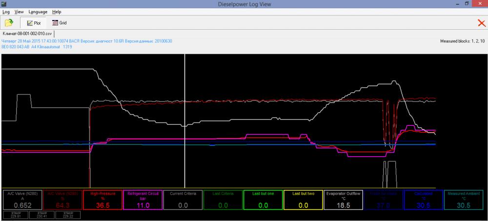 И еще ты написал "нет нагрузки от компрессора" - это в какой группе измерений видно, а то я все группы до 23 на бумашку переписал. Или ты имеешь ввиду изменение оборотов двигателя при включении компрессора? Визуально по тахометру мой двиг никак никогда не реагировал на включение компрессора.