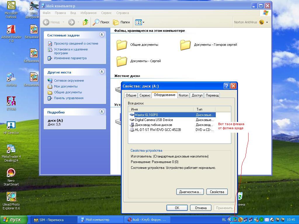 Ответ: Комп не читает фотки с фотокамеры... Покажи скриншот с подключенным фотиком настройка-администрирование-управление компьютером-управление дисками