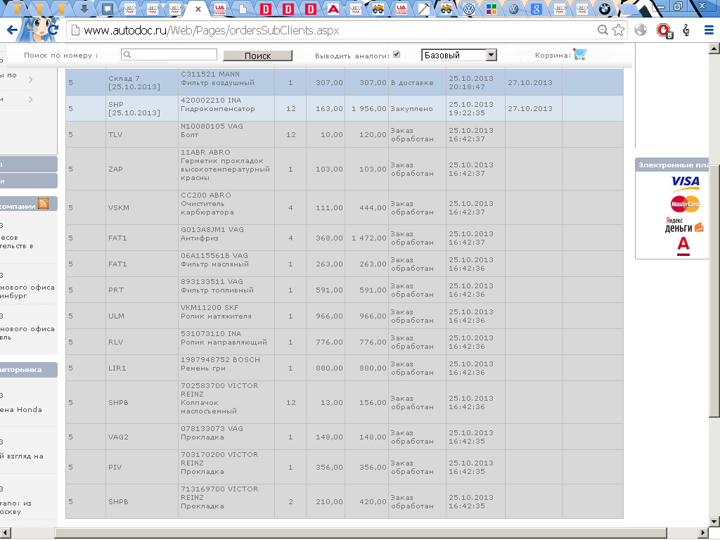 http://linkme.ufanet.ru/images/49bc7e24fd83e734ccd1ec6d7c0c15a8.png такую вот закупочку себе заказал сегодня, 9к вышло, в принципе гуманные ценники. Заказывать стараюсь только от рекомендованных производителей. Дома еще помпа SKF(2100p) и термостат BEHR(359p) валяются. Проблема собственно в стучащих гидриках и воющем ремне грм, решил заодно заморочиться промывкой коллектора и ДЗ и заменой прокладок, ибо потеют.