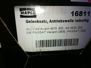 Продам два наружных шруса MAPCO на audi a4 B5 за 4 т.р. либо поменяю на полный комплект колодок на мою А6 (8 передних с датчиком + задние)