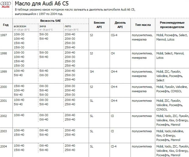 Как же так ребята, предыдущий хозяин 8 лет лил 5w-30 синтетику и я продолжаю а из таблицы получается полусинтетику нужно? Может поэтому и масложором страдаю. Вот скоро буду менять посоветуйте для турбинки,может стоит другого попробовать?