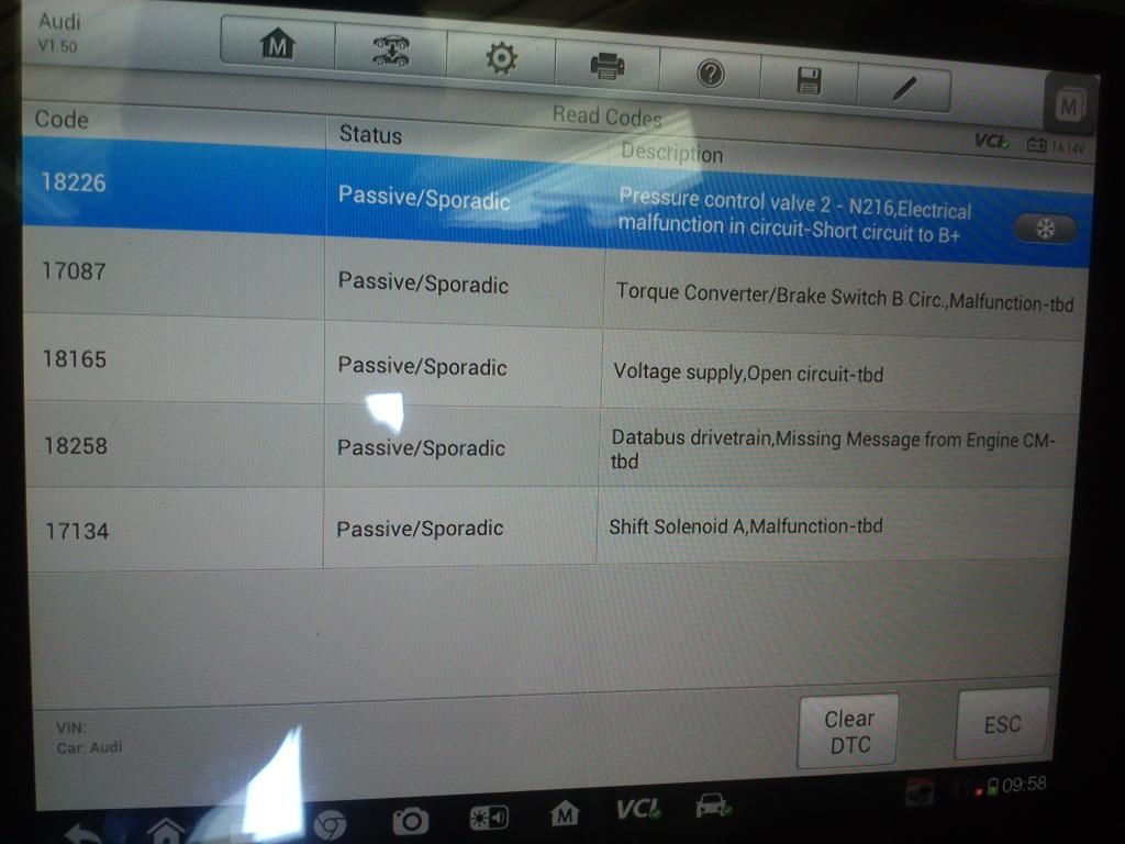 Здравствуйте ! Audi A6 C6, VIN: WAUZZZ4F77N138919, Двиг: 2.4 BDW Код коробки: A7M (если правильно посмотрел) При переключении на D или R, после отпускания педали тормоза, машина "пытается" поехать (наблюдается плавание оборотов двигателя), двигается рывками по пару сантиметров (не знаю как правильнее описать -не едет короче). Исследование на зависимость от температуры охлаж. жидкости не проверял, иногда пропадает. При "удачном" положении педали газа едет плавно. Ездил на диагностику, прикрепил файл, где всё написано. Хочу узнать ваше мнение, стоимость гидроблока озвучили - 70 т.р., цифра очень сильно расстраивает...