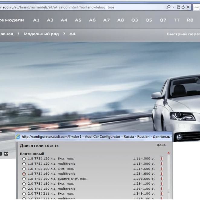 Re: Новое поколение бестселлера Audi в России: Audi Russia объявляет старт продаж Aud 1. Конфигуратор есть ? 2. Електронные (PDF) версии каталогов на русском есть ?