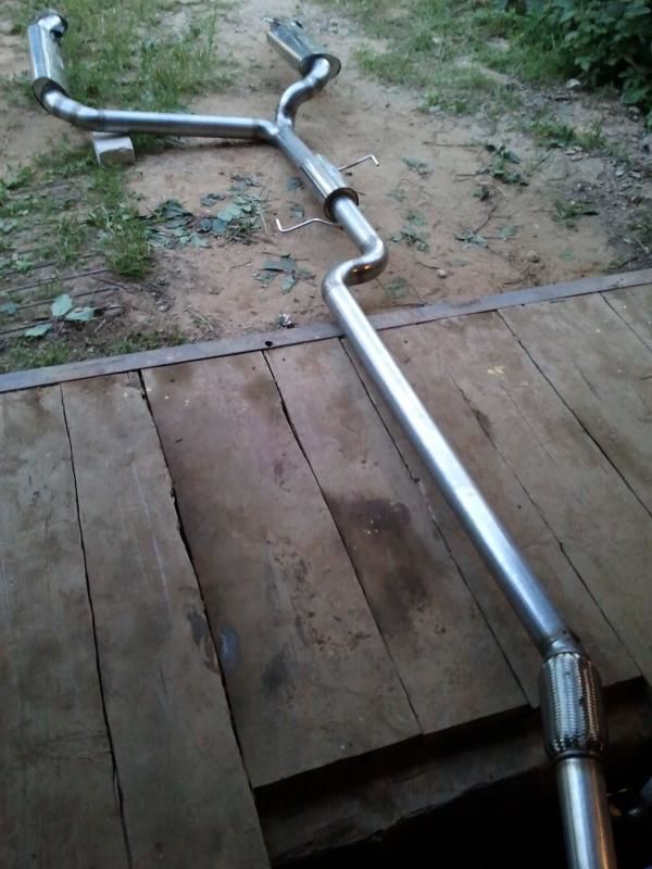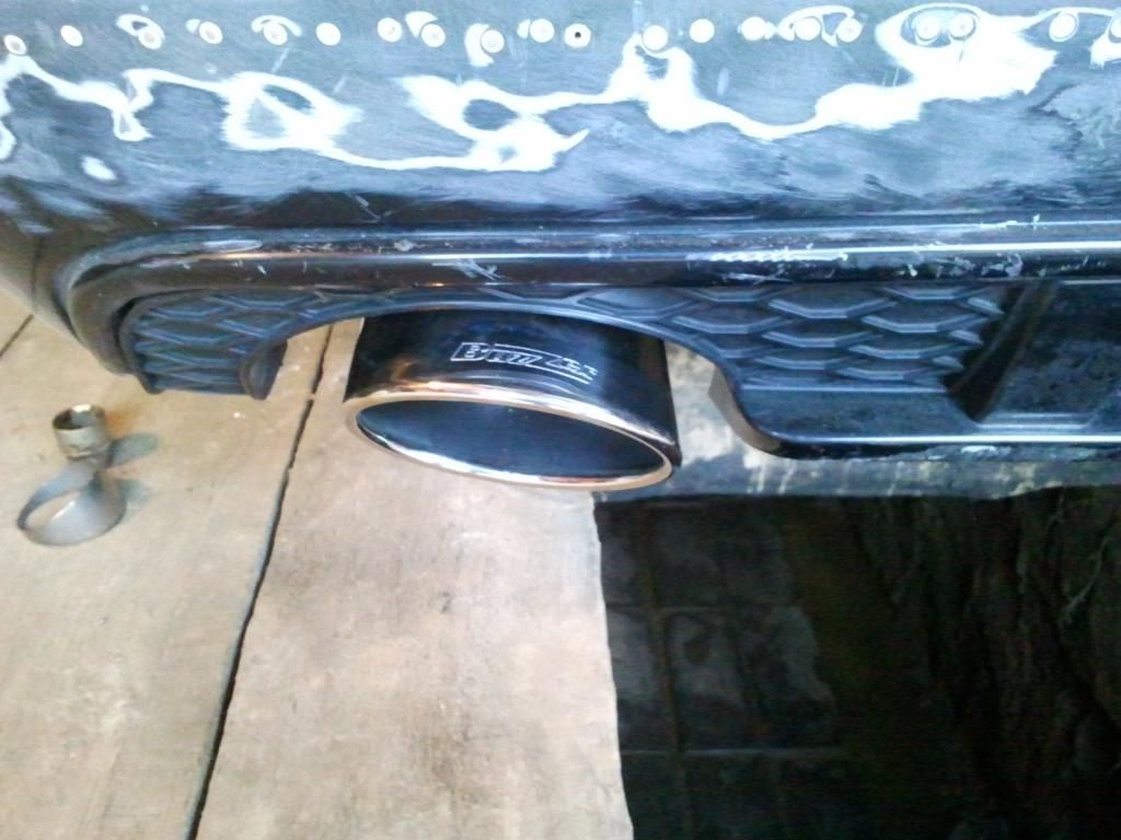 Последняя работа. Изобразил выхлоп из нержи на S6 2.2T. Полная магистраль от даунпайпа через v-band, гофру с промежуточным глушителем с разводкой на 2 стороны ( без вырезания ниши запаски! ) с отдельными насадками. Диаметр труб 3 дюйма.