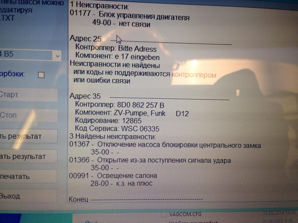 всем привет. Недавно купил машинку, все радует. Вообщем очень нужна помощь..Суть проблемы.. не работала печка, полезли с другом менять, был куплен сразу новый радиатор. все вроде хорошо шло..скинули торпеду, подвинули каркас жесткости..махнули радиатор. Главная проблема в другом, на пол пути обратной сборки, все воткнули. торпеду, климу, приборку..и попробовал завести..вообщем никак. Уже 4 дня в попытках..испробовал все, на реле бензонасоса не подается напруга,замыкал физически..все равно не схватывает, видимо на свечки не подается искра. Тут два варианта мне видится..или я задел что то в сигналке (старлайн а91) или что то в проводах. Вообщем прошу помощи..кто нить скажите что возможно случилось на ваг коме высветилось что нет связи с ЭБУ двигателя, пошустрил на форумах пишут что из за обманки имобилайзера возможно... http://www.audi-club.ru/forum/attachment.php?attachmentid=421380&d=1410889564 заранее спасибо