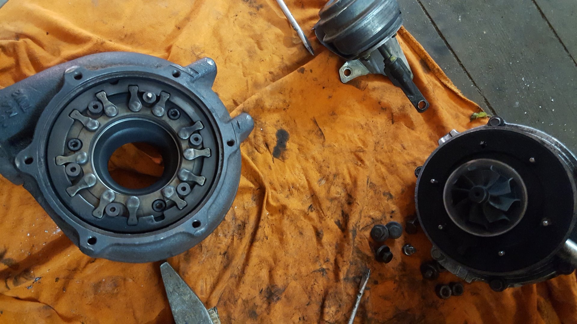 В общем не пинайте сильно По порядку: передув появился давненько,и пргрессировал.Ошибка 00575.Ноут сын убил а передув остался.Рычаг реально заедал. Пару дней назад турбу почистил-результат 0. Решил полумерами не ограничиватся. Со скинутым грибком рычаг ходил отлично. Вскрытие Все чинно-благородно. Колечко с заусенцем имело еще небольшой пропеллер,выровнял. При внимательном осмотре лопаток обнаружил х.з нагар или что это и на всех по чуть-чуть Шлифовка надфилем меня не вдохновила и таким макаром,практически под своим весом снял этот налет В царапинках поглубже виден нагар поэтому не думаю,что зацепил много соток. Улитка. Обрезав шлифовальный отрезным нежно зачистил (как самый умный ) обходя места бочонков,чтоб просадка не появилась ,собрал -клинит и все.Раз 15 разобрал-собрал,нашел в центре фото где нет ролика заусенец микроскопический ! (последствия выравнивания кольца). Вышкурил его все по кругу,собрал - все двигается Последние болтики,машина уже прогревается,ну щас... Выехал,потихонечку до трассы - один сплошной передув.Машина вообще не едет.Тыр-пыр,и так и сяк - никак Может кто замечал,что грибок можно прикрутить выше-ниже на 1-1,5мм? Я собирая турбу решил,что если увеличивая шток мы убираем передув прикрутил его прижав в низ. Решил отпустить и перекрутить макс.в верх.Не поехала. Остановился,1ю,тапку в пол - бууу еле еле и с 3000об взрыв.Машин полетел. И очень хорошо.Но потом то есть подрыв,то овощ. Остановился,даже не знаю почему скинул фишку с ДМРВ и машина полетела Вот такая блин история