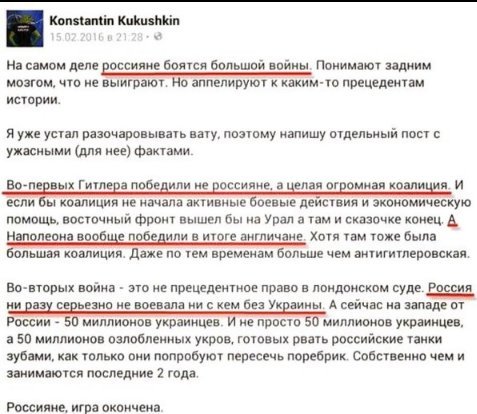 вчера новостью смотрел. не понял только одного. добро шоферюгам дали разъехаться. наших там на узбиччах пресовали, колесья раскрашивали. хохлам выделили стоянки с питанием, туалетом, вафлей, и под полицайской охраной. вчерась разъезжались им чуть не прощание славянки сыграли. поехали наши домой или нет не очень то ясно, тем более что пара телефонных звонков с журналюгами в прямом эфире, чую, люди даже по телефону боятся рассказывать как им правый сектор обещает бошки прострелить. говорят отмороженые на весь моск. долго у нас еще будут в робингудов играть? заробитчан нахер отсюда выгнать. ввести для въезда в россию загранпаспорта и визы. чтобы только в гости на неделю и обратно на нэньку.