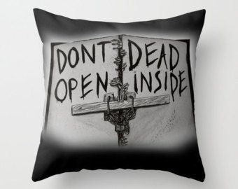 DEAD INSIDE, используя только эти буквы. Возможно, спереди есть надпись "DONT OPEN"? Типа, аллюзия на ходячих мертвецов: Может, купили эту одежду перед Хэлоуином?