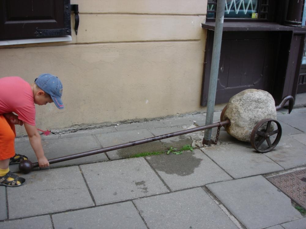 Мое мнение-агрегат для ремонта мостовых: крюком можно вынимать осевшие/разбитые камни или плиты, круглый валун здесь как противовес-утяжелитель, чтобы крюк врезался между камнями. Если ручка неподвижная, то потом можно подкатить к выступающему из дороги камню, перевернуть колесиками вверх, приподнимать за ручку, и опуская над дорогой, утрамбовывать агрегатом, например, ту же брусчатку. Вот "Собянку" так не потрамбуешь, разлетится в пыль, а булыжную мостовую-легко.http://www.audi-club.ru/forum/attachment.php?attachmentid=246550&d=1323069115