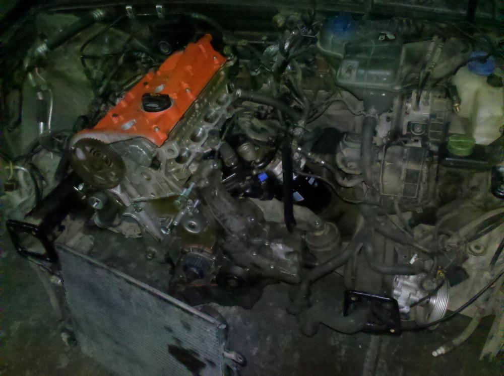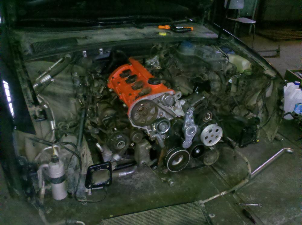 Процесс установки двигателя Когда турбу ставил, никак не мог понять, куда же подсоединяется шланг слива антифриза с турбины... Минут 30 крутились вокруг движка и чесали репы а оказалось, когда блок красил, дырдочку заклеил скотчем и закрасил, хрен поймешь что скотч Ну что... поехала машинка Проехал сегодня по городу 50 км, кажись мощи появилось ))) правда выше 4тыс. не крутил. Расход по компу получается 15-16 значит лишние кони то появились Сцепление работает отлично, ни каких дерганий и т.п. Единственное - жесткое стало что писец, как на Форестере стареньком, но для меня это не критично Завтра в Липецк в командировку на ней поеду, заодно и обкатаю