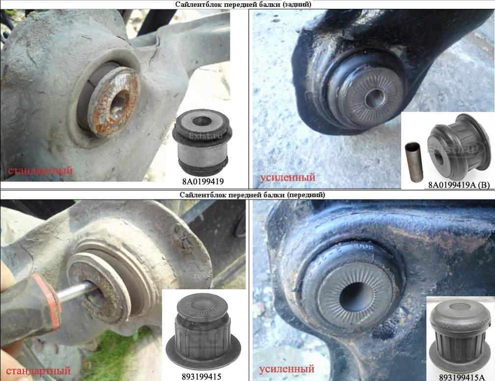 Это если сайленты обычные. А мы говорим про усиленные. Посмотрев внимательно фото http://www.audi-club.ru/forum/attachment.php?attachmentid=196715&d=1286893146 понимаешь, что выпресовать усиленные сайленты не снимая подрамник нереально