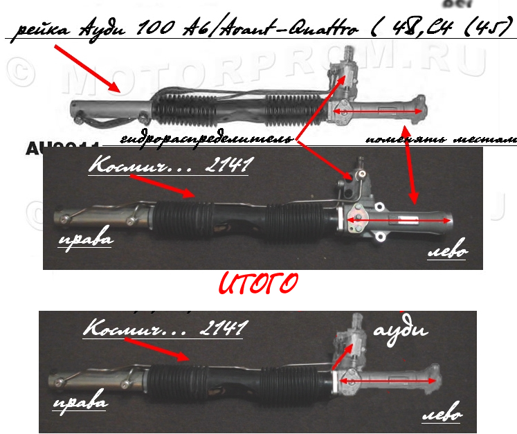 День добрый. Такой вопрос к тем кто механизм редуктора рейки москвичевской сравнивал. Там упоры рейки 443419148 которых в экзисте не дождешься такие же как на ауди? Смогу я упоры поменять на своей ,вынув их с москвичевской рейки?