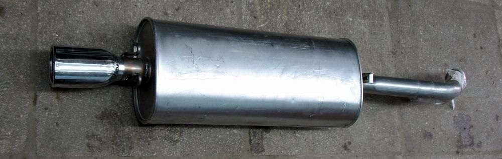 Торец с развальцовкой отрезан, т.к. стыковка заднего глушителя со средним переделана под трубчатый хомут.