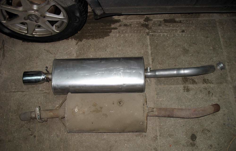 Глушитель достаточно тихий, клиент после замены просто кайфовал )) Правда, в старом дыра была сантиметров 15...