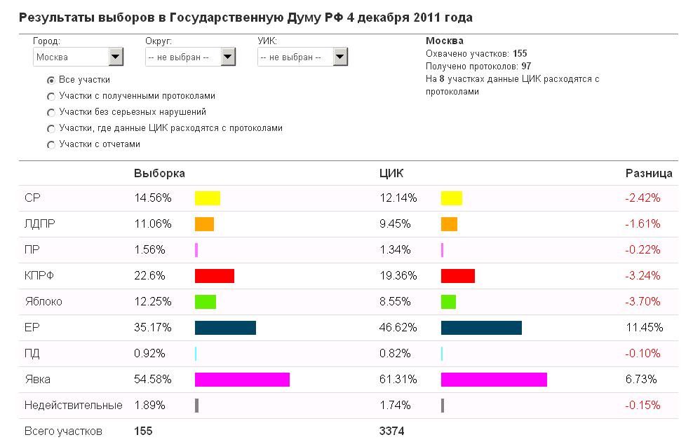 И что характерно - по официальным результатам выборов 4 декабря на участках в Москве без зафиксированных наблюдателями нарушений процент за ЕР =27%. В Чечне, правда, за сотню. Без статанализа не разобраться на кого ВЦИОМ рассчитан?