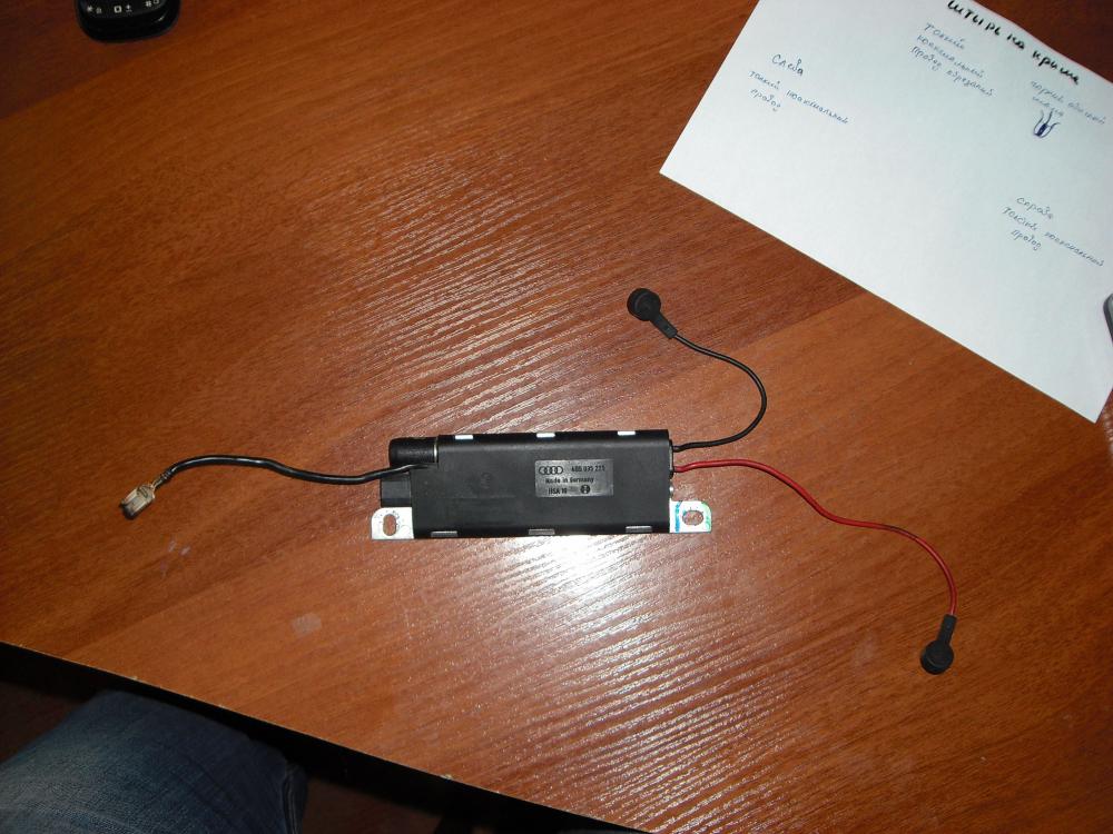 Не работает у меня радио в машине и не работало с самого начала решил разобраться. Ваг ком показал что то типа обрыва антены (не помню уже точно). снял плафон накладку сзади и обнаружил, что кто-то там уже был. Ситуация такая: со штыря на крыше выходит 2 провода, один тонкий коаксиальный обрезанный, второй чёрный с разьёмчиком типа мамы никуда не подключенный. Справа идёт под крышей к плафону коаксиал потолще тоже обрезанный. С левой стороны подходит коаксиал по тонше обрезанный. Больше никаких проводов и усилителей не обнаружено. Очень хочу восстановить штатный усилитель, даже приобрёл один за символическую плату с номерком 4b5 035 225 ( на фото). В авто стоит магнитола касетная audi chorus с ченджером, ещё когда-то был штатный телефон. Ребята может кто ездит на avant, посмотрите что и как там у вас, уже 2 дня в нете роюсь найти ничего не могу.