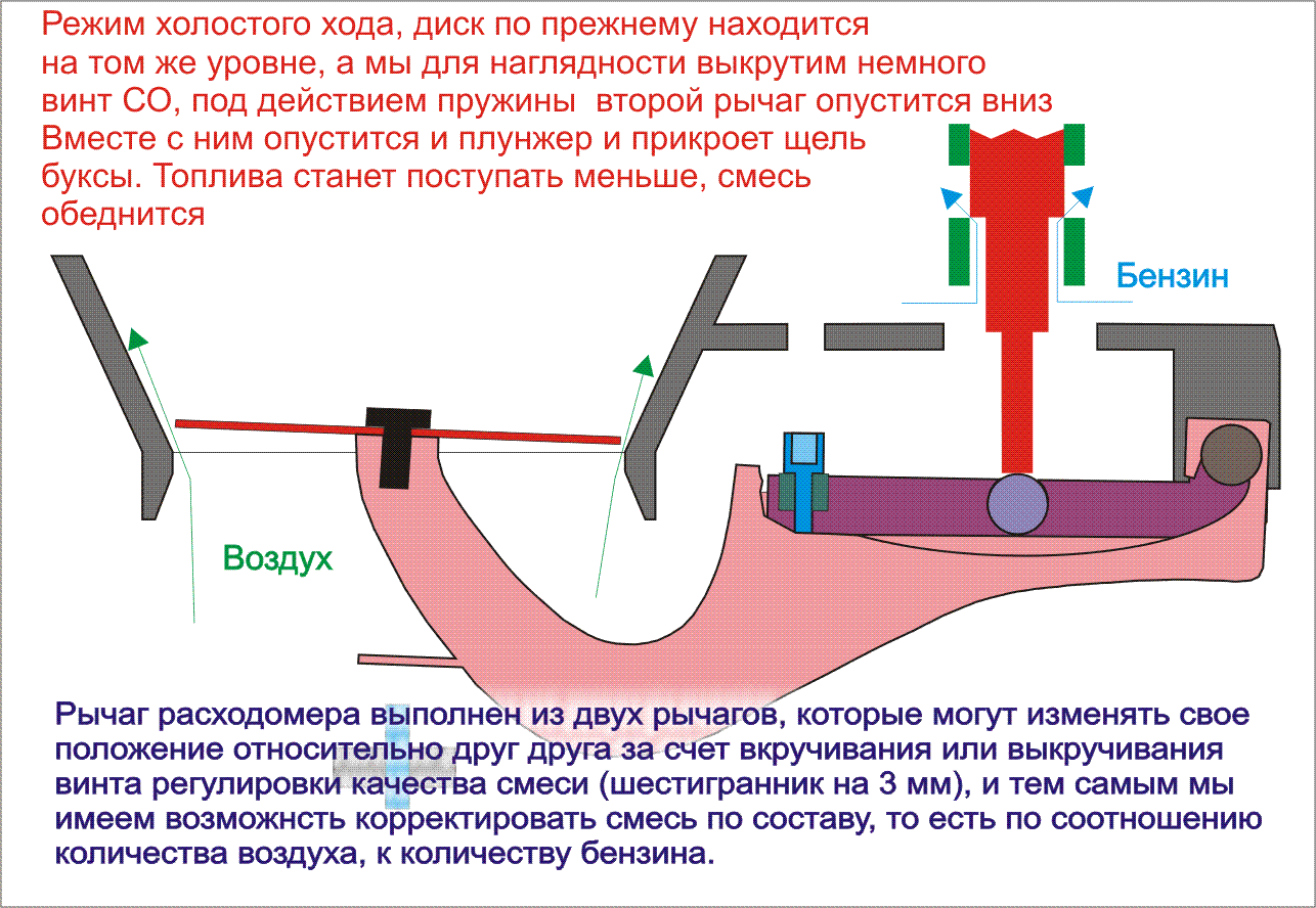 Факт: Болтик СО при закручивании свим нижнем торцом упирается в рычаг лопаты и раздвигает обе части рычага, тем самым больше давит на плунжер. В результате перелив.......