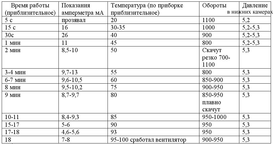 Все измерения мА со знаком плюс. Давление в нижних камерах 5,2-5,3 бар