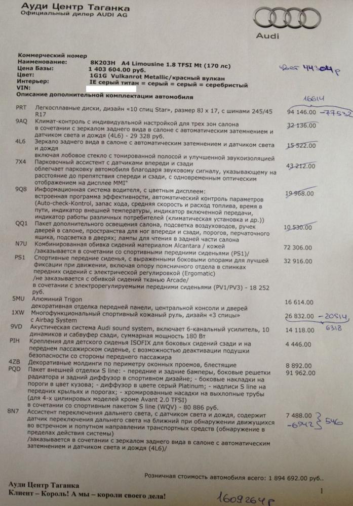 #1007 Wrestler13 Правильно посчитаная цена машины - цена в которой учтены все вычетаемые опци, на форуме уже есть много информации: http://audi-club.ru/forum/showpost.p...postcount=3855 http://audi-club.ru/forum/showpost.p...postcount=3927 http://www.audi-club.ru/forum/attachment.php?attachmentid=271242&d=1336819818