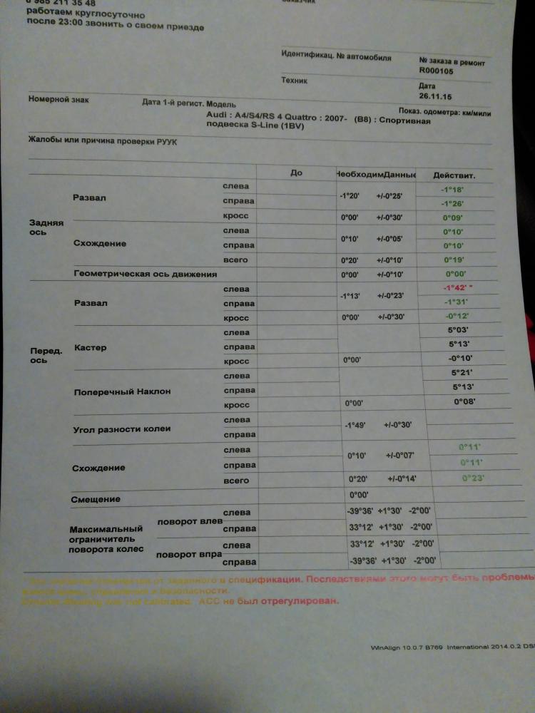 Вывод: передняя подвеска регулируется только подрамником. Таком образом самое лучшее что мне могут сделать это усреднение развала с отклонением в 2 минуты от допуска. Не комильфо =(