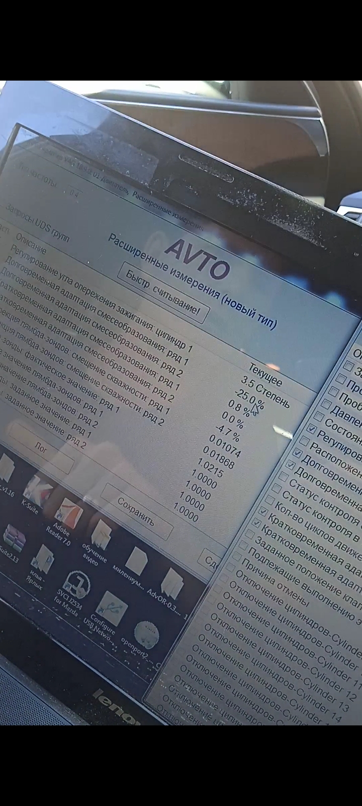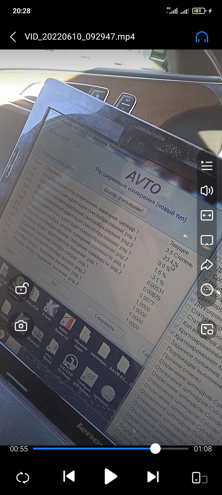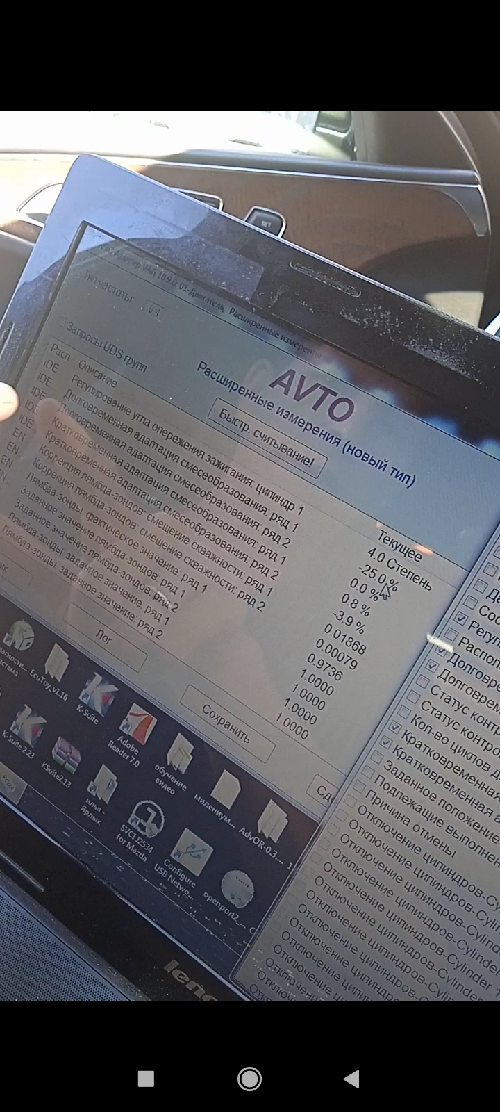 Ауди 3.0 v6 компрессор, ошибок нет, троит на холостых и не едет на свои 310лс. Какой-то перекос по головам, 1 голова показывает смесь -25% на холостом ходу, если газануть до -8%, все остальные показатели по 0, а 1голова так и остается в минусе. В чем может быть причина? Есть видео но оно слишком большое, не могу загрузить, прикладываю фото.