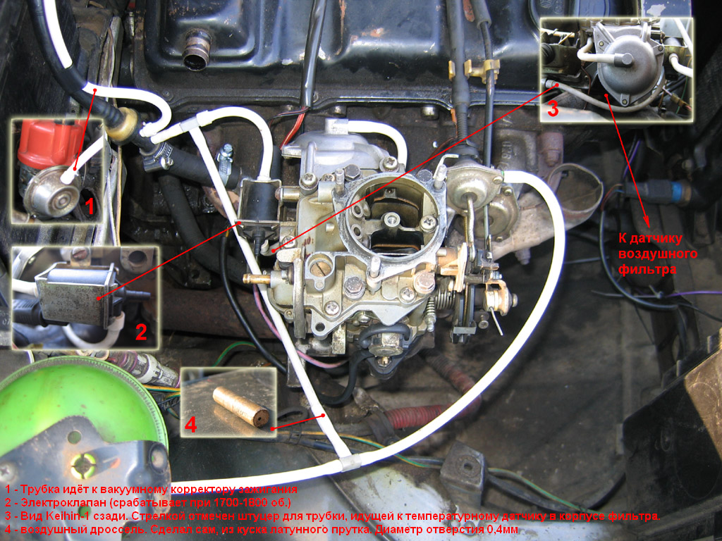 Так там к карбу (если имеем ввиду Keihin-1) подходит всего два провода! Один к клапану отсечки топлива, а второй от массы карба на массу двигателя. Есть ещё провода от электроклапана - но это уже совсем другая история! Смотри тут: http://audi-club.ru/forum/showthread.php?t=68471&highlight=%CE%E1%EE%F0%EE%F2%FB+Keihin+Audi+80+b3
