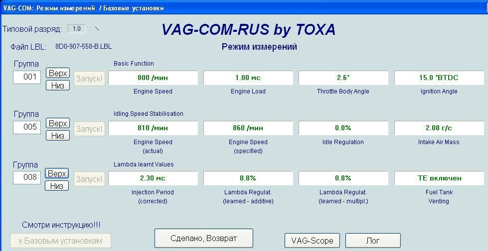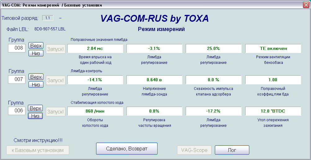 Re: Как проверить ЛЗ на ADR через vag-com? можно ссылочку плз? просто чего копаю,расход многоват....... и еще, там где 0%,так она во всех группах 0%. и под нагрузкой,и без нее,и на хх. вроде как бы в одном тоне.