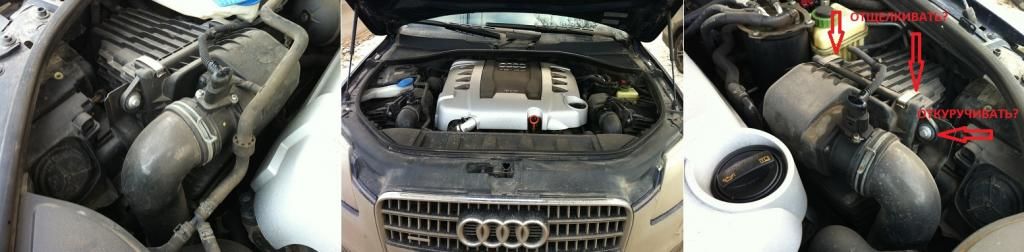 присоединяюсь к вопросу вчера пробовал отщелкнуть, болт этот с фото не крутил - корпус отходит на 2-3 см, но этого мало чтобы вытащить из него фильтрующий элемент - дроссель с патрубком упирается в двигатель. поменять не смог. сег. утром пришла мысль снять декор с движка - места для маневра должно прибавится. попробую на выходных. ЗЫ 4.2TDI 2 фильтра