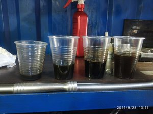 Заменил масло в АКПП ZF 8HP65 полностью, в переднем диффе и торсене. Пробег 145,000 км. Из проблем - на холодную чуть заметные толчки при переключении R-D, которые пропадали при нагреве и периодические легкие пинки при переключении между 4-5 в какой-нибудь пробке на МКАДе при скоростях 20-40. На фото по порядку, слева направо где стаканчики и отливы масла на бумаге: 1. масло из АКПП до залива промывки 2. масло из АКПП после залива промывки 3. масло из торсена 4. масло из переднего диффа Последние 2 фото: масло в начале замены автоматом и в конце. Всего было заменено 13 литров масла. При снятии поддона практически идеальная картина: запах гари отсутствовал, магниты чистые без металлической стружки и иных элементов. Существенных изменений пока не заметил, возможно, стало менее явным переключение на месте на холодную R-D, переключение 4-5 и обратно на малых скоростях. Других изменений нет. Бюджет 35.000 рублей.