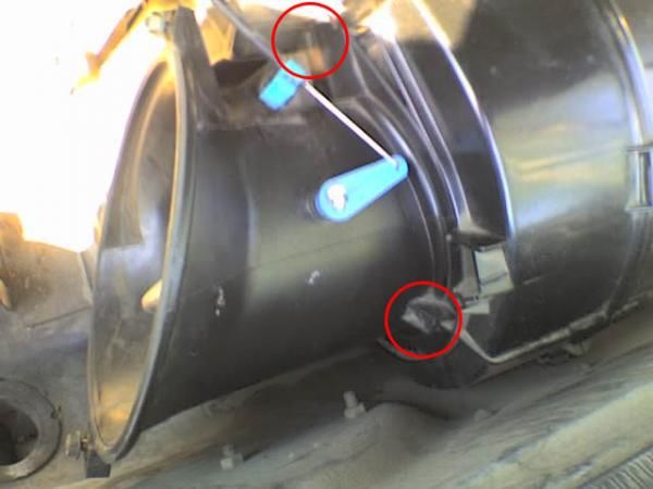 на второй фотке слева та самая коробочкА, которая плавник держит, а справа фигулина на саморезе. Я от нее трубки не отсоединял, а открутил и вбок отложил. Некоторые еще плавник этот совсем вытаскивают, но это не обязательно, да и денег он стоит, если его сломать (что очень возможно).