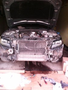 На днях решил поменять ремень! Менял в гараже без ямы. Вывесил морду, чтоб удобней было, думал геморой будет со снятием бампера, оказалось все на много проще. Все по эльзе, бампер снял легко, аж удивился. Про машину: взял пол года назад, пробег по спидометру 130 т.км, авто из германии в10.2012г. в России до меня один хозяин. Запросил историю, в Германии последнее ТО в конце 2011 года 152т.км. Тут задумался, открыл крышку ГРМ и увидел, что натяжение натяжного ролика на 5 мм меньше нормы. Думаю пробег где-то под 200т.км был. Ремень оригинал 28.05.2008г (машина тоже 2008г.)Решил,что надо срочно менять. Pакупил ролики(INA) ремень (континенталь), помпу SKF. После снятия бампера возник вопрос, что лучше: морду в сервисное положение или снять радиаторы. Где-то на форуме видел, что удобно снять радиаторы. Посмотрел, интеркуллер снимается одним саморезом под звездочку и разжал два хамута(остальное одна защелка). После слития антифриза, радиаторы держатся на двух саморезах внизу и сверху защелки. Патрубки тоже на защелках. Снял, радиатор охлаждения вмести с радиатором кондиционера(он на гибких шлангах) и оставил с права. И вот все открылось. Единственное, надо было ролик полуклинкового ремня поменять, как-то шумновато крутиться. Из гемороя, не влазил стандартный шток фиксации распредвала, но откручиваеш круглую головку штока ион влазит, ТНВД фиксировал сверлом 6 мм. Когда долез охренел, натяжной ролик отходит от нормы порядка сантиметра, при попытки натянуть, выяснилось, сто ремень растянут так, что натянуть больше не возможно, он просто проскакивал. На ремне заметил пару трещин. Так все прошло относительно нормально, только пришлось несколько раз метки распредвала выставлять(выставишь, пару оборотов, проверяешь, сдвиг) С третьего раза получилось выставить ровно. Из снятых деталей все кроме ремня в хорошем состоянии. Ролики стояли 3 шт INA (два франция, один словакия) натяжной ролик япония (не ожидал), ремень континенталь(правдо еле название прочитал), помпа так и не понял. Кто соберется менять, удачи. Ничего сложного.